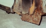 Durch den recht geringen Fahrzeugwert eines Rover P4 und einem aufwändigen Demontageprozess der vorderen Kotflügel – für eine fachgerechte Instandsetzung aber unabdingbar – wird an dieser Stelle oftmals mit aufgesetzten Reparaturblechen gearbeitet. Zwei Bleche reichen aus, und das Fahrzeug kann mit diesem provisorisch geschweißten Bereich z.B. beim TÜV vorgeführt werden. Der Rostteufel wütet im Inneren jedoch erbarmungslos weiter.