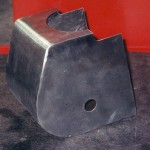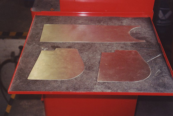 Fast immer ist die Abdeckung für die Mechanik des Handbremshebels unterhalb des Bodenbleches am magischen Dreieck zerstört. Selbstverständlich baute ich auch dieses Teil in Eigenregie nach.