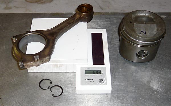 Es folgte die Montage der Kolben. Zuvor jedoch überprüfte ich die Gewichtstoleranzen von Pleuel und Kolben auf einer elektronischen Feinwaage. Anschließend wurden die Nockenwellen, eine neue Steuerkette und die geplante Schwungscheibe montiert. Der Motorblock war nun soweit vorbereitet, dass mit der Montage der überholten Zylinderköpfe