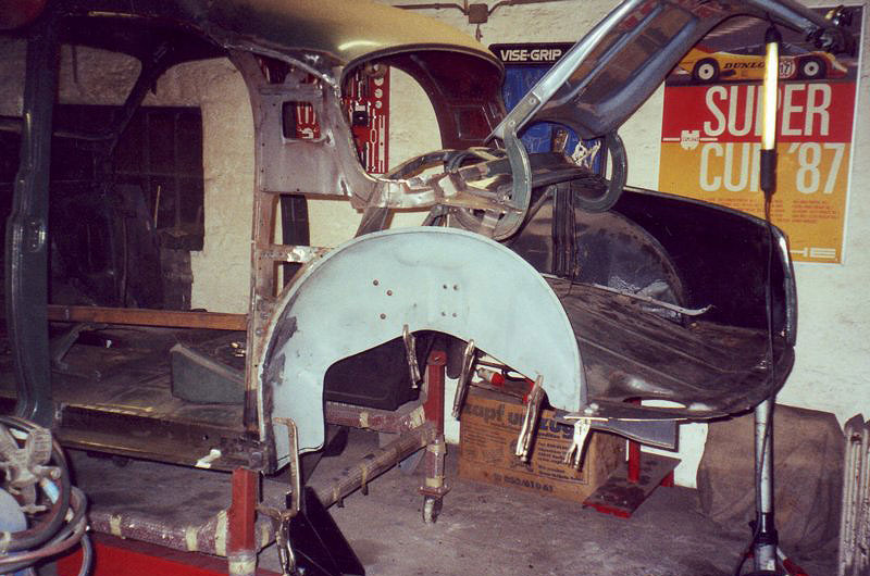 Kotflügel, Frontbleche und vieles mehr lagen aufgearbeitet im Lager. Der vordere Teil der Rohkarosse war fertig geschweißt. Endlich hatte ich ein wenig Zeit mich in einer schöpferischen Pause an einem Glas Whiskey und dem guten Geschmack einer Pfeife zu erfreuen. Kraft tanken für den zweiten Akt. Schließlich stand noch die Instandsetzung des Heckbereiches der Rohkarosse bevor. Und die hatte es in sich!