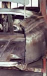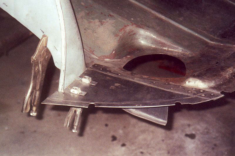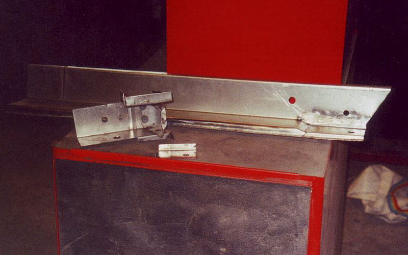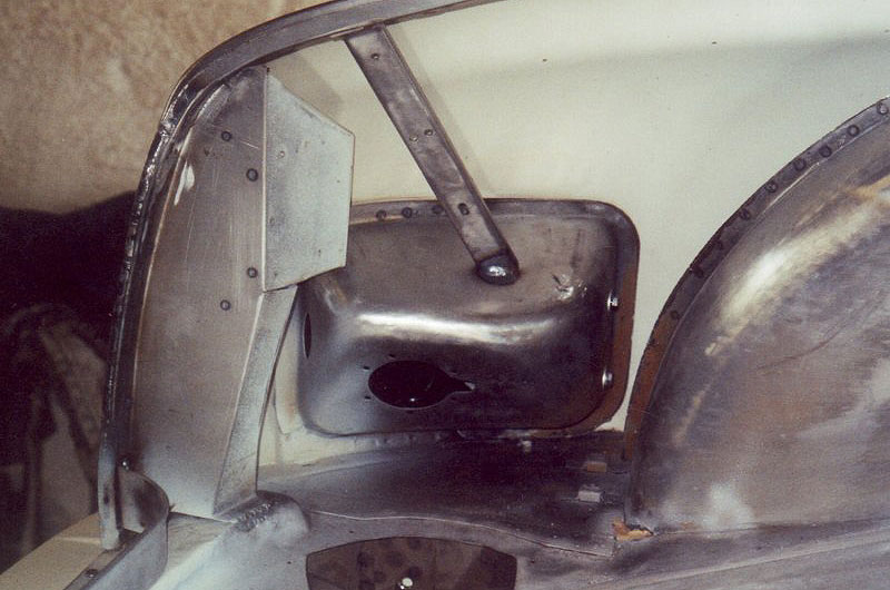 Das Gehäuse zur Aufnahme von Tankdeckel und Tankstutzen waren anschließend schnell umgeschweißt. Auch die Neuanfertigung eines Schutzbleches für die Rückleuchten bereitete keine Probleme. Abschließend konstruierte ich mit Hilfe eines Stauch- und Streckgerätes eine Leiste, die am Seitenteil als Aufnahme für die Dichtung des Kofferraumdeckels dient.