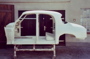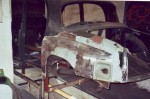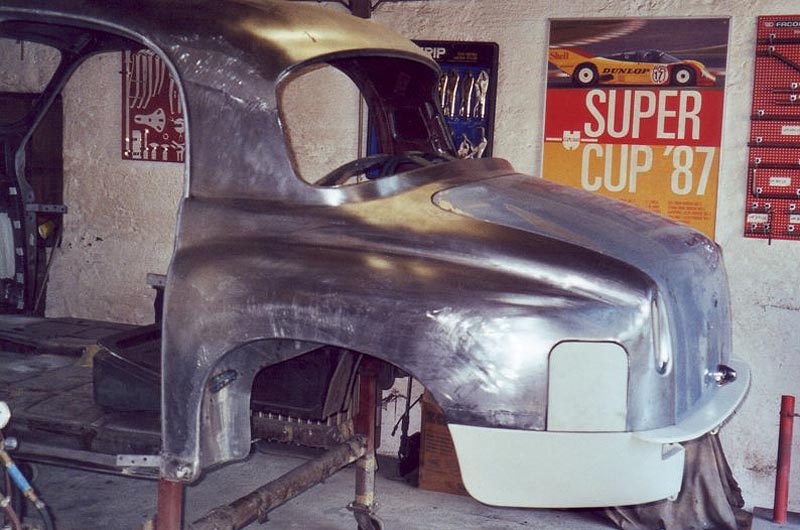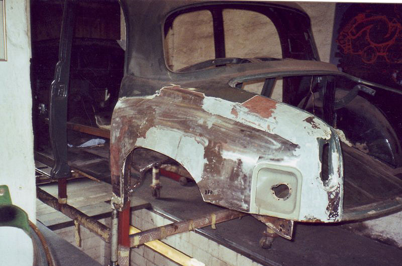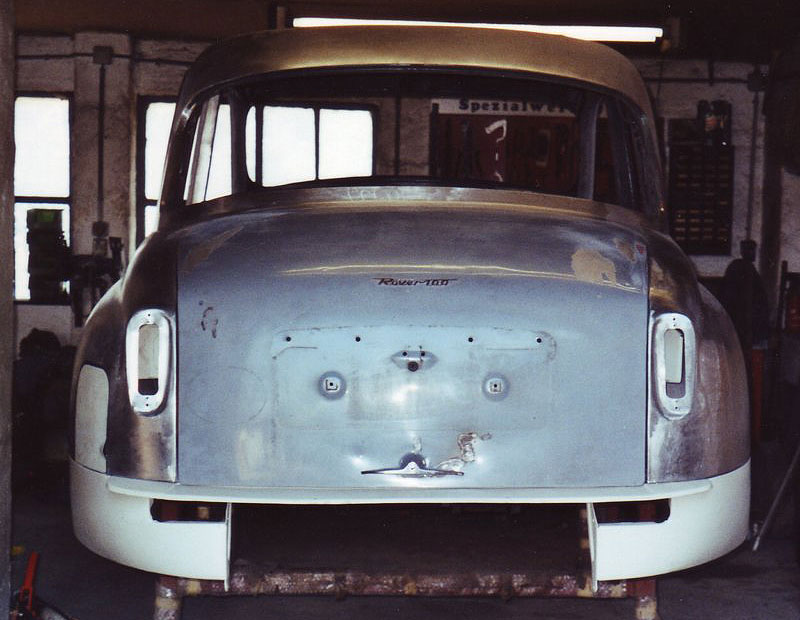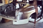 Einen langen Winter nahm die Instandsetzung der Heckpartie in Anspruch. Ich dengelte, bog Bleche, baute Formwerkzeuge, schweißte und stieß so manchen deftigen Fluch aus, deren Wortlaut ich an dieser Stelle besser nicht wiederhole. Obwohl die letzten zwei noch fehlenden Bleche für wenige britische Pfund als Neuteile erhältlich gewesen wären, baute ich diese mit geschundenen Händen auch noch nach. Es machte einfach Spaß! Damit waren die Karosserierestaurationsarbeiten an meinem Tantchen abgeschlossen und ich konnte mich den Vorarbeiten für die Neulackierung der Blechhaut zuwenden.