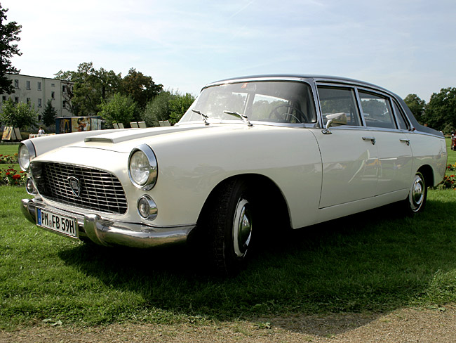Freunden hält man immer gerne ein Plätzchen frei. Lange musste ich auch nicht warten, bis sich einer meiner langjährigen Werkstattkunden mit seinem Bristol 408 , Baujahr 1964, neben mich stellte. Bei dieser geräumigen Rarität dürfte ihm das Reinschmuggeln seines geduldigen Hundes Lilly nicht schwer gefallen sein, denn die Mitnahme von Vierbeinern war auf dem Gelände eigentlich nicht gestattet. Nichtsdestotrotz unternahmen wir später einen gemeinsamen Rundgang zu Dritt. Im Fokus hatte ich natürlich Klassiker der Marken Lancia und Rover. Immer wieder einen Augenweide waren für mich eine Flaminia und ganz besonders ein Rover P6.