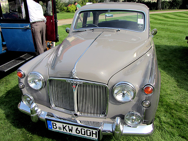 Johannes »Hübi« Hübner, der in der Klassik-Szene allseits bekannte Moderator, begrüßte jeden ankommenden Oldtimer mit seinen geschätzten erklärenden, launigen Worten. Währenddessen ließen es sich die interessierten Zuschauer unter Schatten spendenden Sonnenschirmen bei Köstlichkeiten vom KaDeWe gut gehen. Bevor ich mich dem schönen Wetter hingeben konnte, musste ich zuvor jedoch auf schmalen Parkwegen im Schritttempo vorbei an staunenden Besuchern mir ein schönes Plätzchen für meinen Rover P4 100 von 1962 suchen.